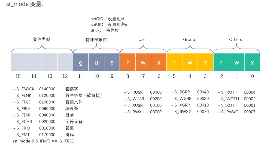 st_mode 中的文件类型可以通过以下宏检查: